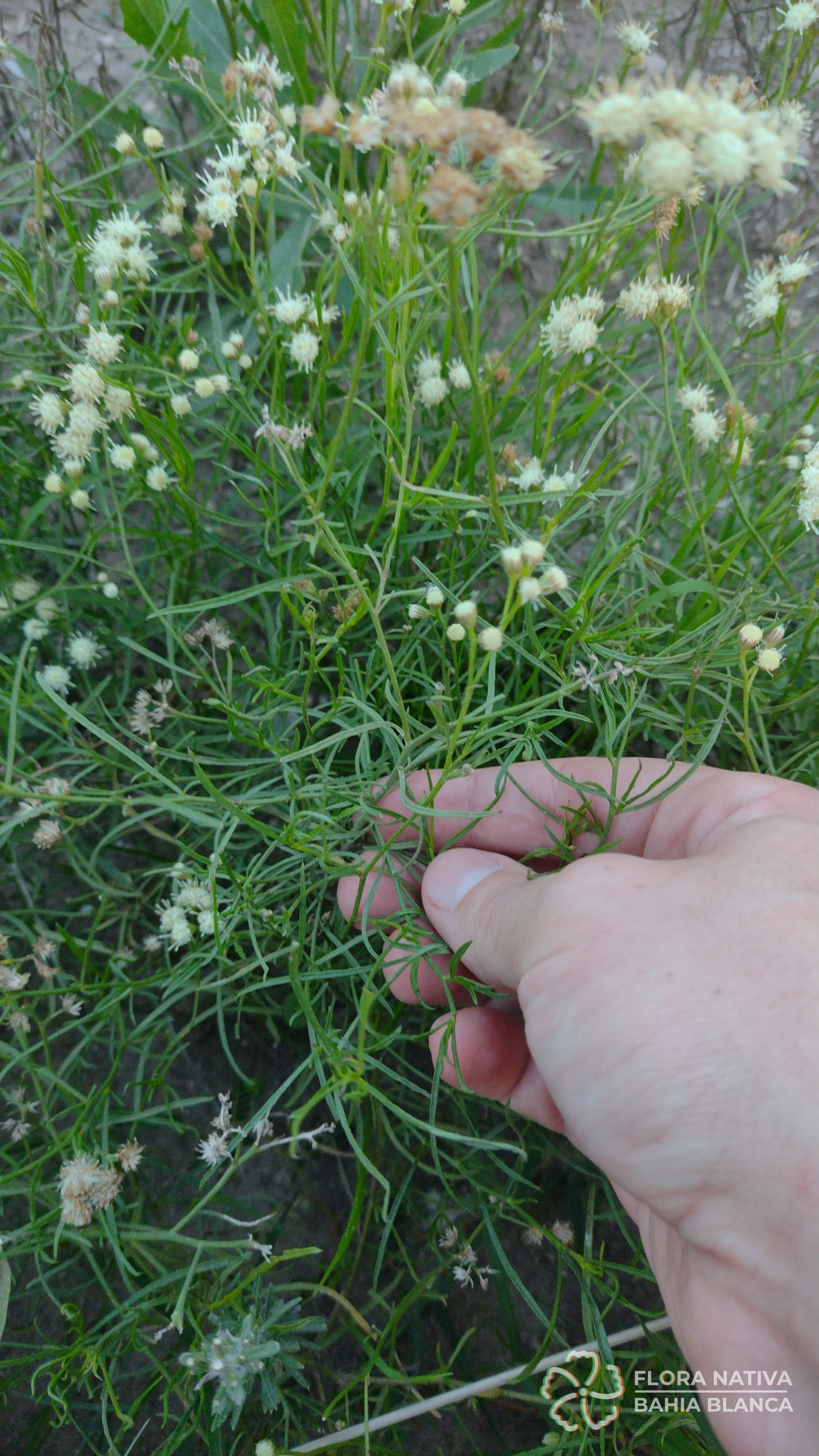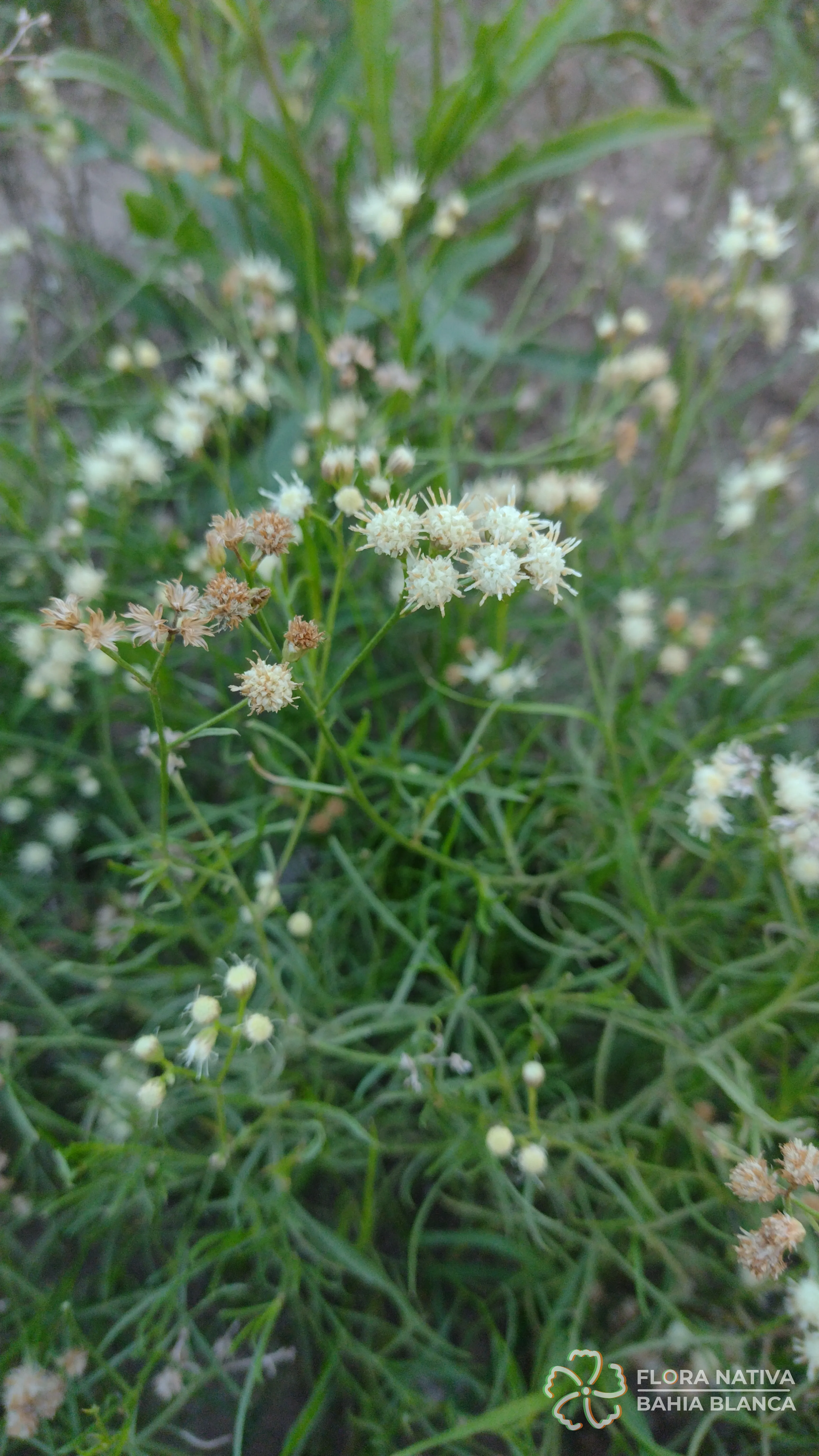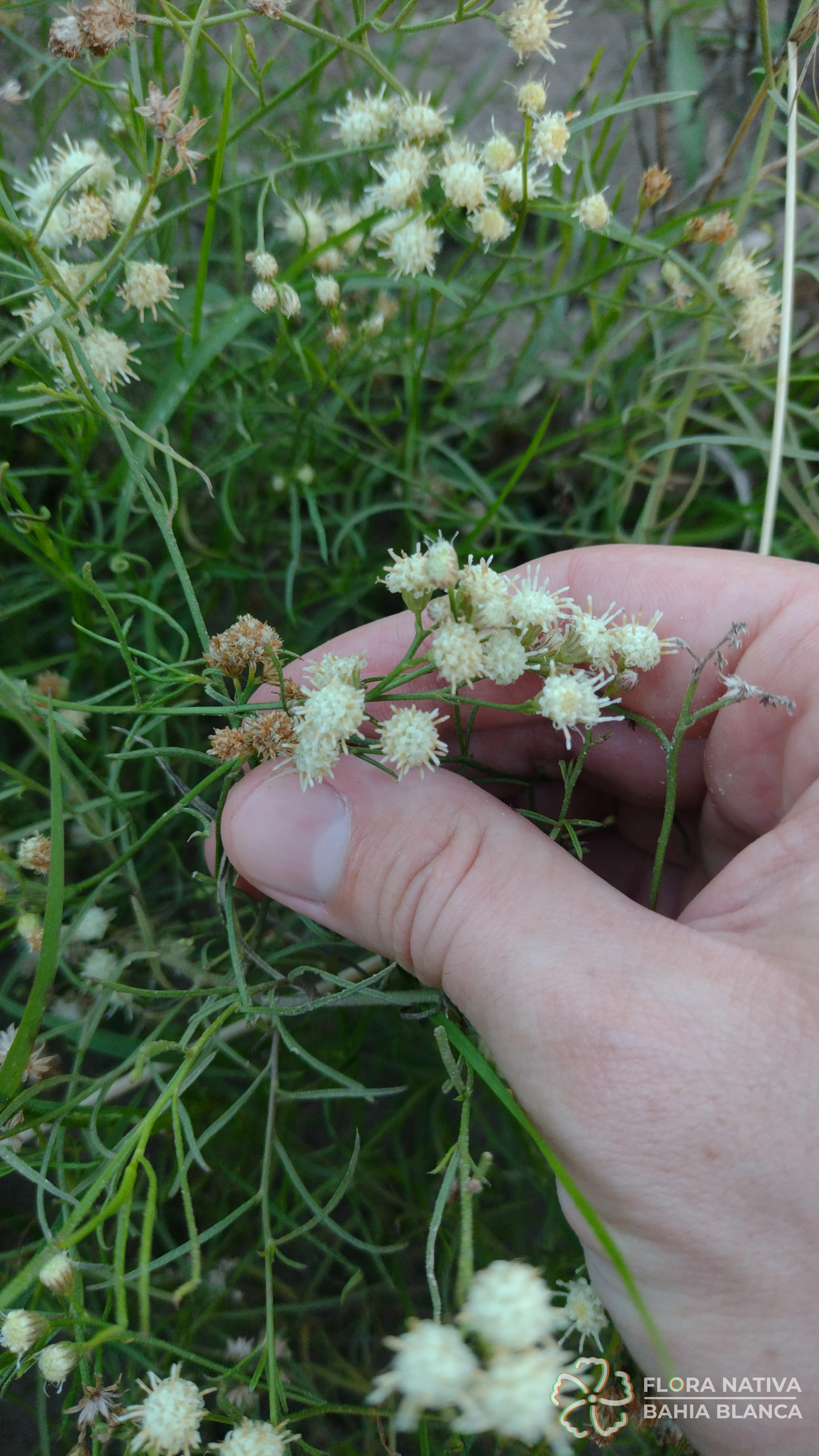 📋 Descripción técnica: Hierbas perennes, de 10-30 cm de alt., glanduloso (órgano especializado en la dispersión de las semillas formado a partir de las paredes del gineceo y en el que también puede participar el receptáculo u otras estructuras florales; más ráramente procede de una inflorescencias, constituyendo entonces una infrutescencia.)- puberulas (estructura u órgano vegetal ligeramente pubescente o cubierto por pelos simples.), con tallos delgados, flexuosos (en zigzag), ascendentes o erectos. Hojas linear (hoja con los bordes paralelos y mucho más larga que ancha, como el limbo de las gramíneas.)- filiformes (semejante a un hilo, muy delgado y flexible.), agudas en el apice (extremo de un órgano situado en el punto opuesto de donde se origina.), enteras o denticuladas (hoja con el margen dentado con pequeños dientes.) en el margen, uni o trinervadas, de 1,5-7 x 0,05- 0,2 (0,3) cm. Capitulos (inflorescencia con el eje ensanchado en su extremo (receptáculo), donde se insertan las flores, rodeadas por brácteas (involucro). El conjunto es funcionalmente como una flor. Esta inflorescencia es característica de la familia Compositae. En el capítulo puede haber sólo flores flosculosas, sólo liguladas, o una combinación de flósculos en el centro del capítulo (disco) y lígulas en el exterior (radios).) pedunculados (que posee pedúnculo; eje principal de una inflorescencia), dispuestos en cimas (inflorescencia en la que el extremo de la rama florífera acaba en una flor y las restantes flores proceden de ramas laterales.) corimbiformes (con aspecto de corimbo; inflorescencia racemosa con pedicelos de distinto largo donde todas las flores alcanzan la misma altura.) compuestas, densamente ramificadas en el ápice de las ramas. Capítulos pistilados (con pistilos y sin estambres funcionales; femenino.) con involucro (conjunto de brácteas que rodean a las flores en una inflorescencia.) acampanado de 2,5-4 x 3-4 mm; filarios (conjunto de brácteas involucrales externas en algunos capítulos de las Asteraceae.) en 3 series, agudos, los exteriores ovados (con el contorno en forma de huevo, con la parte más ancha en la zona basal.) o angostamente ovados y los interiores lineares. Flores numerosas, de ápice truncado (con el extremo aplanado.). Aquenios pubérulos, 5- costados (órgano en cuya superficie aparecen una o varias costillas.). Capítulos estaminados con involucro acampanado de 3-4 x 2,5-4 mm; filarios en 3-4 series, agudos, los exteriores ovados, los intermedios ovado-oblongos y los interiores linearoblongos. Flores numerosas; estilo (prolongación del ovario al final de la cual aparece el estigma.) con ramas largas y separadas.