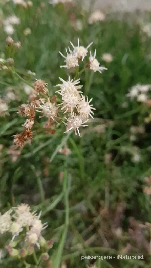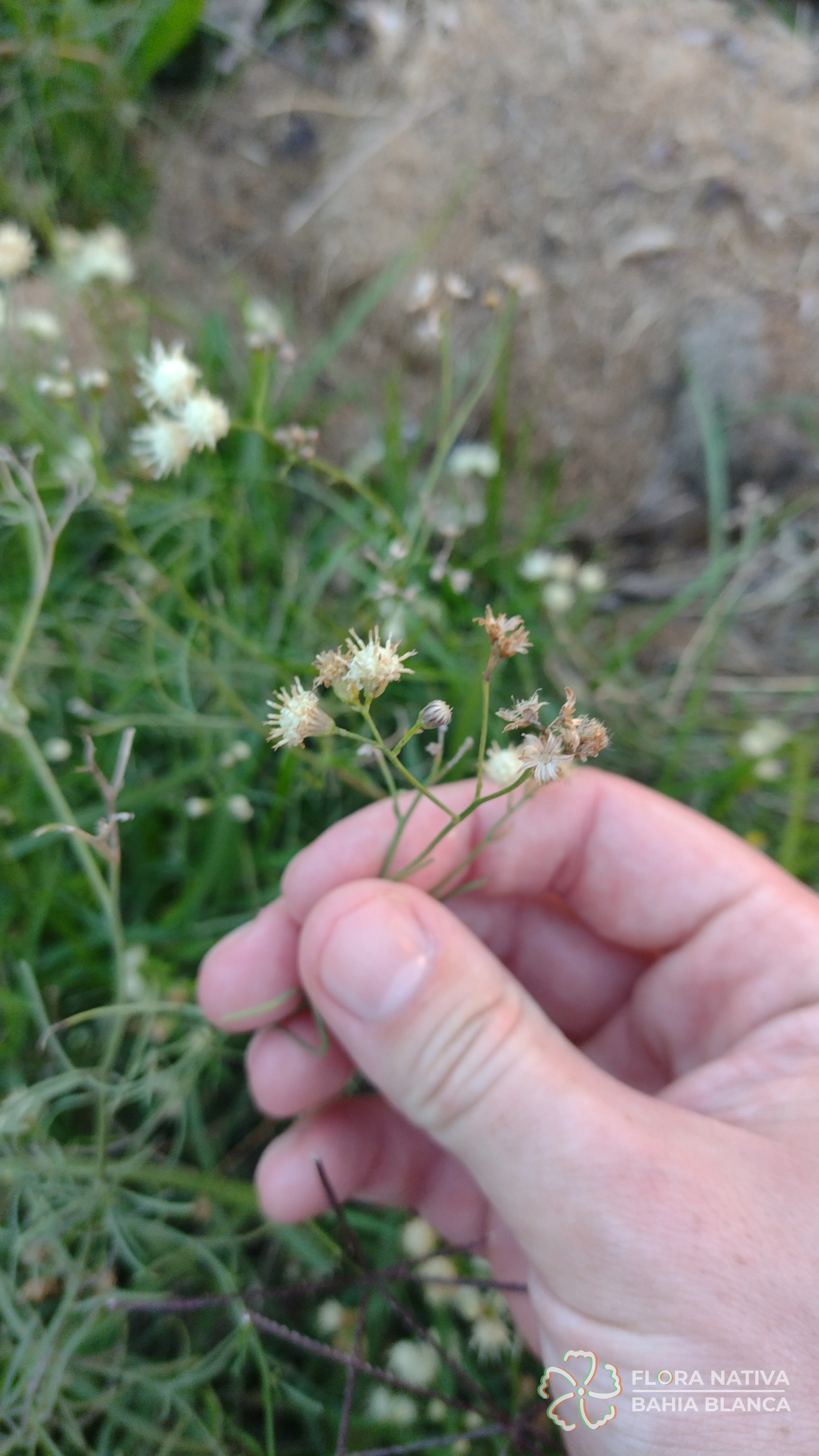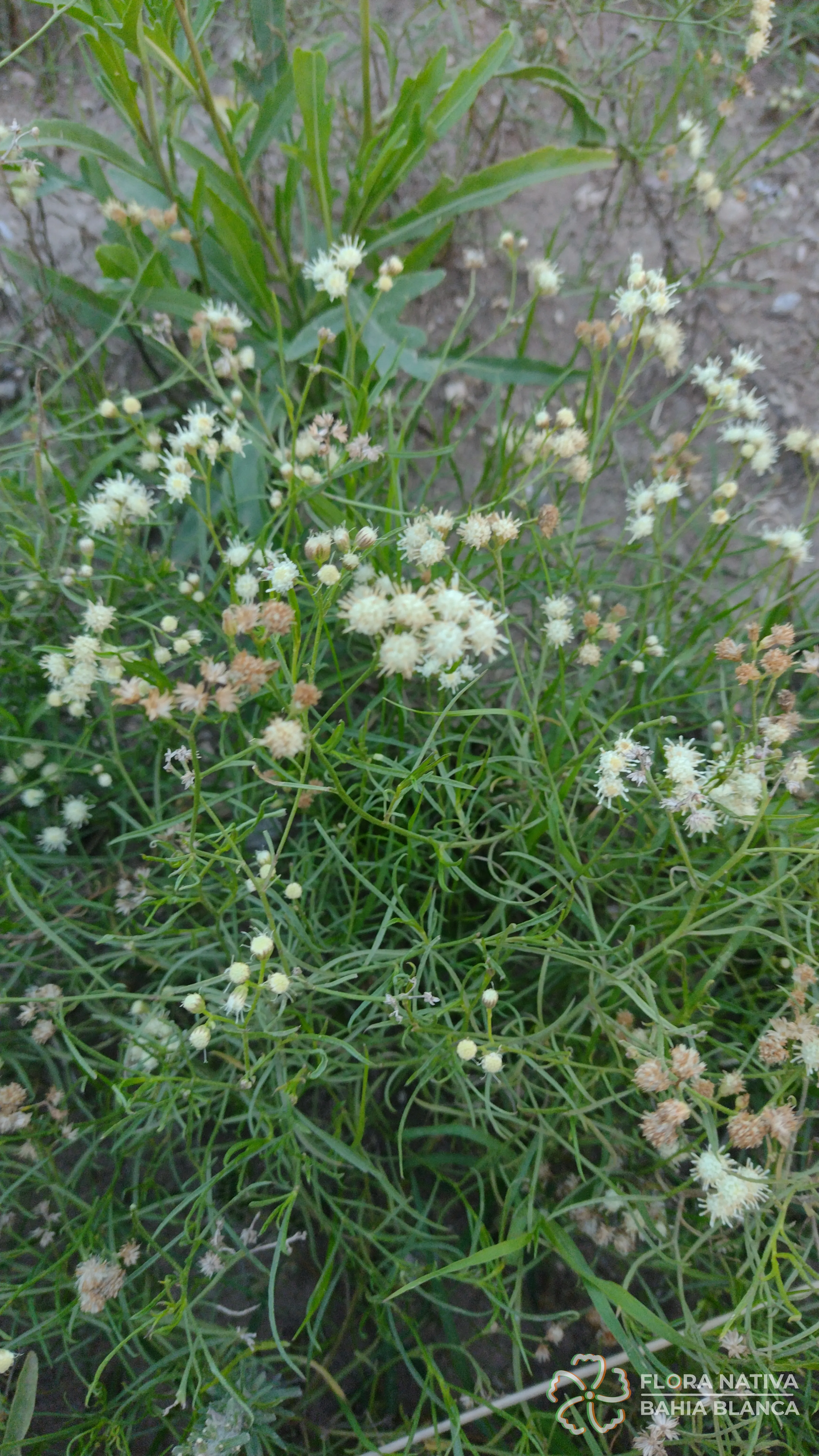 📋 Descripción técnica: Hierbas perennes, de 10-30 cm de alt., glanduloso (órgano especializado en la dispersión de las semillas formado a partir de las paredes del gineceo y en el que también puede participar el receptáculo u otras estructuras florales; más ráramente procede de una inflorescencias, constituyendo entonces una infrutescencia.)- puberulas (estructura u órgano vegetal ligeramente pubescente o cubierto por pelos simples.), con tallos delgados, flexuosos (en zigzag), ascendentes o erectos. Hojas linear (hoja con los bordes paralelos y mucho más larga que ancha, como el limbo de las gramíneas.)- filiformes (semejante a un hilo, muy delgado y flexible.), agudas en el apice (extremo de un órgano situado en el punto opuesto de donde se origina.), enteras o denticuladas (hoja con el margen dentado con pequeños dientes.) en el margen, uni o trinervadas, de 1,5-7 x 0,05- 0,2 (0,3) cm. Capitulos (inflorescencia con el eje ensanchado en su extremo (receptáculo), donde se insertan las flores, rodeadas por brácteas (involucro). El conjunto es funcionalmente como una flor. Esta inflorescencia es característica de la familia Compositae. En el capítulo puede haber sólo flores flosculosas, sólo liguladas, o una combinación de flósculos en el centro del capítulo (disco) y lígulas en el exterior (radios).) pedunculados (que posee pedúnculo; eje principal de una inflorescencia), dispuestos en cimas (inflorescencia en la que el extremo de la rama florífera acaba en una flor y las restantes flores proceden de ramas laterales.) corimbiformes (con aspecto de corimbo; inflorescencia racemosa con pedicelos de distinto largo donde todas las flores alcanzan la misma altura.) compuestas, densamente ramificadas en el ápice de las ramas. Capítulos pistilados (con pistilos y sin estambres funcionales; femenino.) con involucro (conjunto de brácteas que rodean a las flores en una inflorescencia.) acampanado de 2,5-4 x 3-4 mm; filarios (conjunto de brácteas involucrales externas en algunos capítulos de las Asteraceae.) en 3 series, agudos, los exteriores ovados (con el contorno en forma de huevo, con la parte más ancha en la zona basal.) o angostamente ovados y los interiores lineares. Flores numerosas, de ápice truncado (con el extremo aplanado.). Aquenios pubérulos, 5- costados (órgano en cuya superficie aparecen una o varias costillas.). Capítulos estaminados con involucro acampanado de 3-4 x 2,5-4 mm; filarios en 3-4 series, agudos, los exteriores ovados, los intermedios ovado-oblongos y los interiores linearoblongos. Flores numerosas; estilo (prolongación del ovario al final de la cual aparece el estigma.) con ramas largas y separadas.
